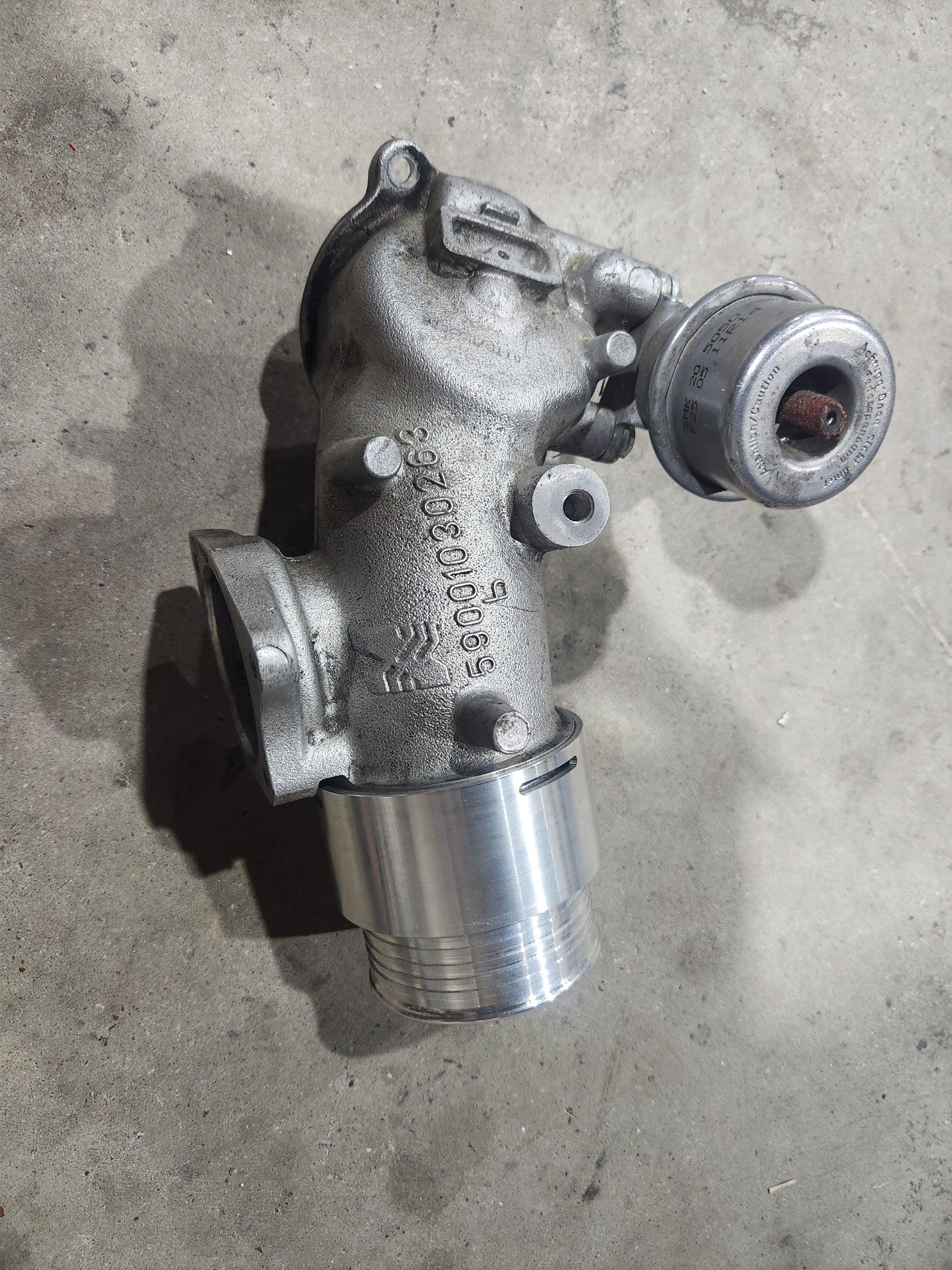 M57 Turbo pressure outlet coupling with 2.5" hose barb fitting. Perfect to use on M57 repower applications or for custom intercooler applications. Fitting comes with viton orings but you must reuse your OEM clip.